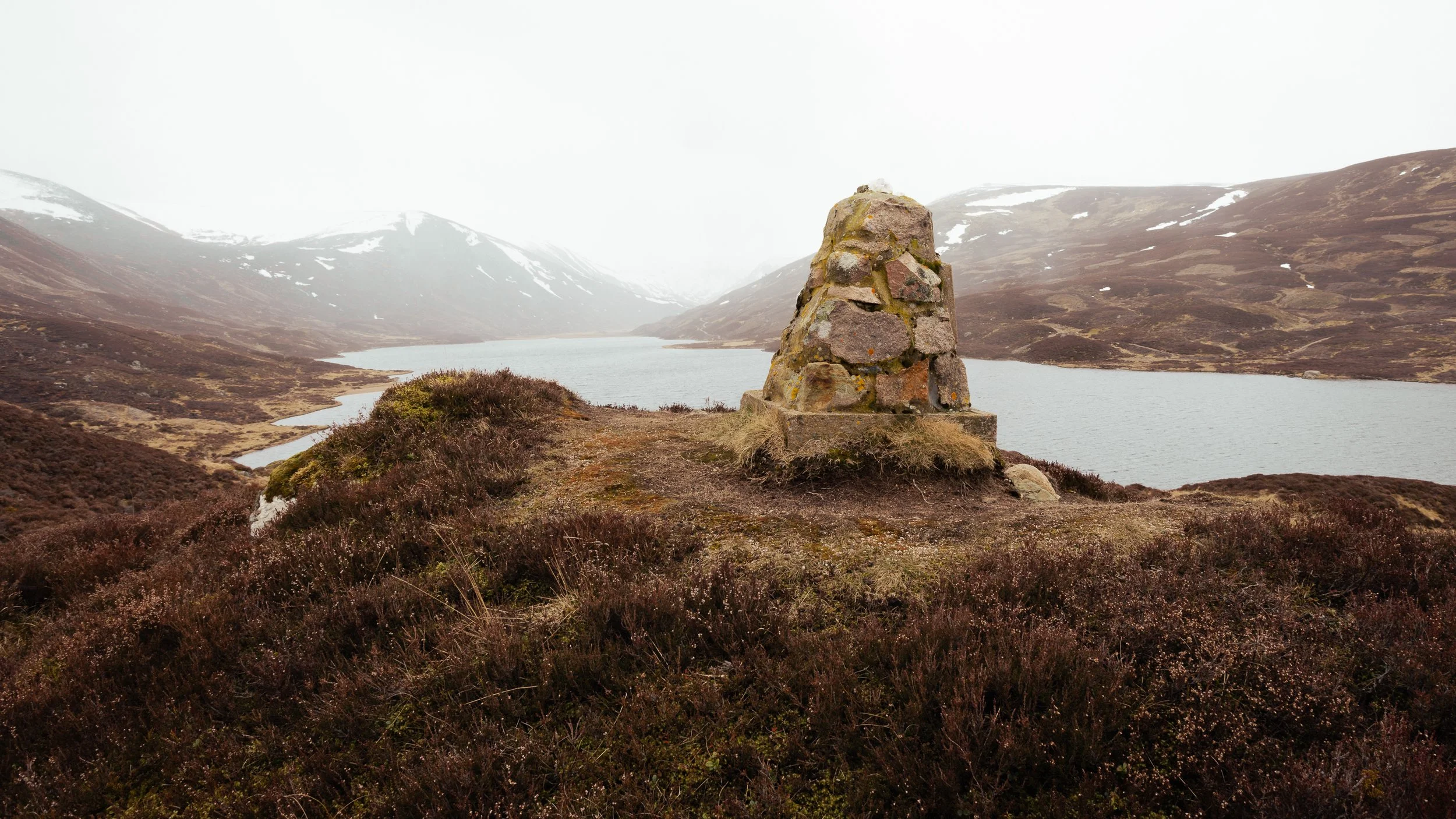 It was a good job the bothy was there because as soon as we reached the loch, the snow rolled in from the far end. I managed to fire off a few photographs before the views of the surrounding Cairngorm mountains were completely obscured by the weather. We hid out in the bothy and had our butties (sandwiches, for those not from Yorkshire) while the initial snow shower blew through.