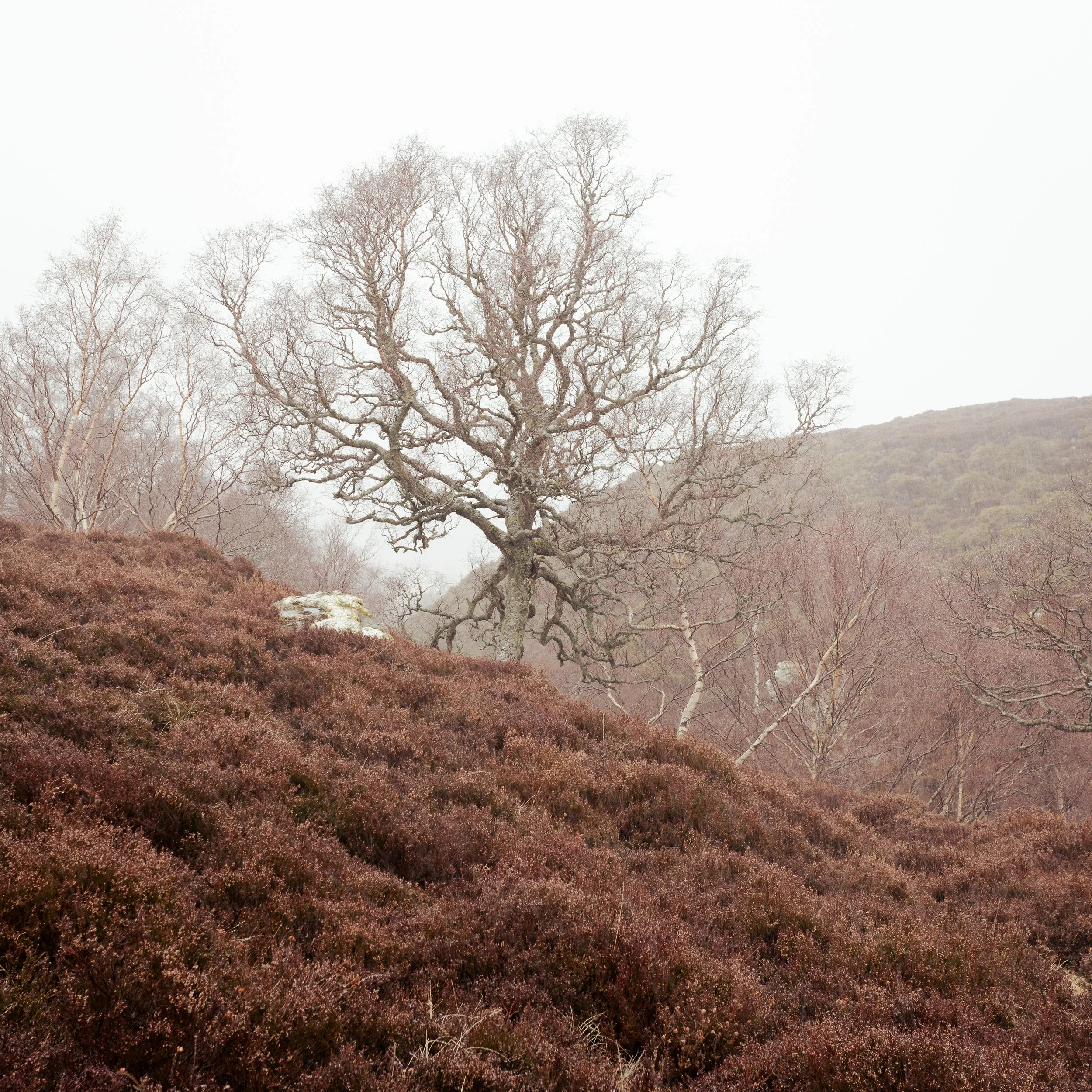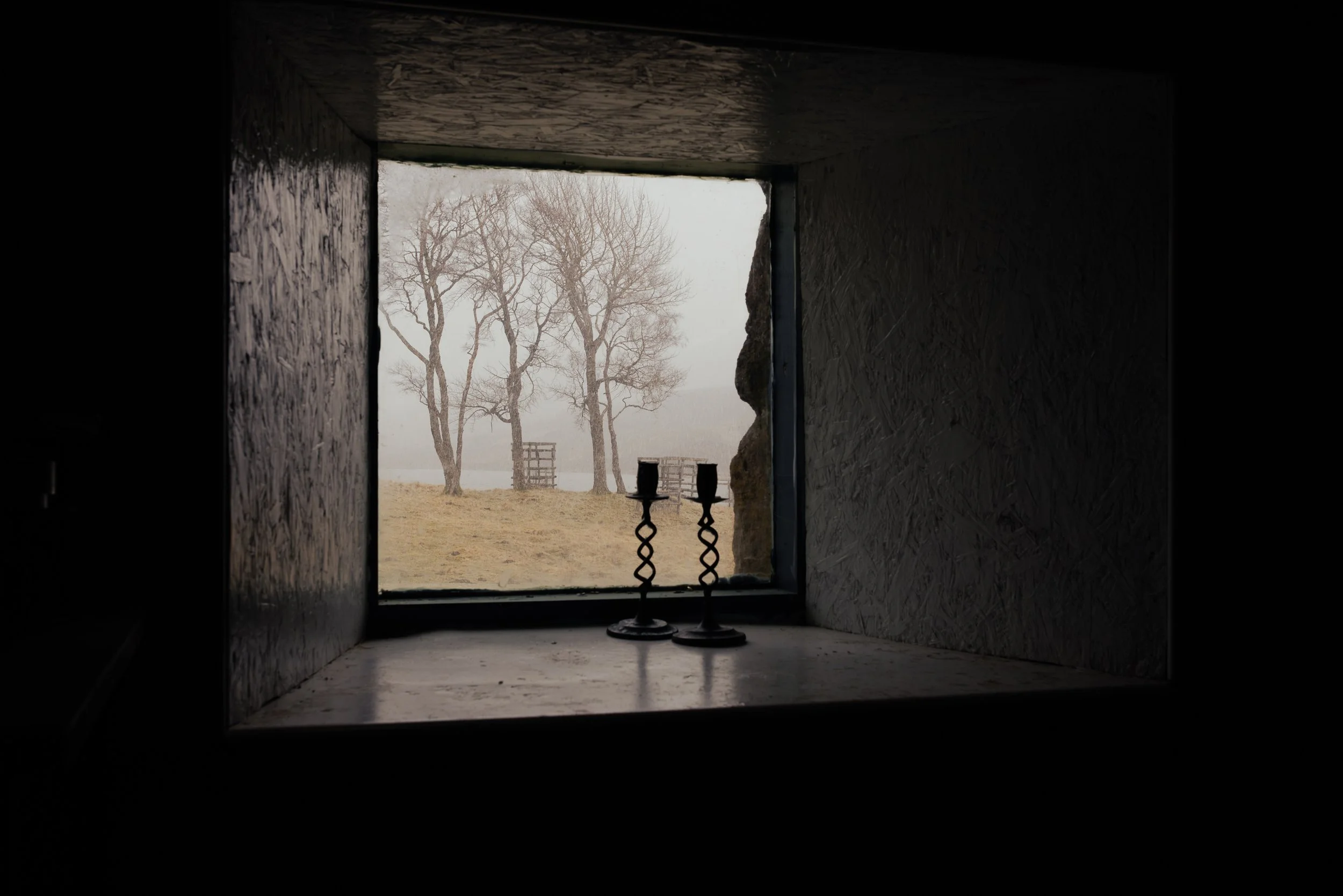 The bothy itself offered a photographer’s delight. Through the small square window I framed a square crop of the birch trees outside and the candlestick holders on the sill — a simple, balanced composition that worked beautifully in monochrome and colour. Shooting through a window like that is a great technique for travel and landscape photographers: it creates a natural frame, adds depth, and gives viewers a sense of place.